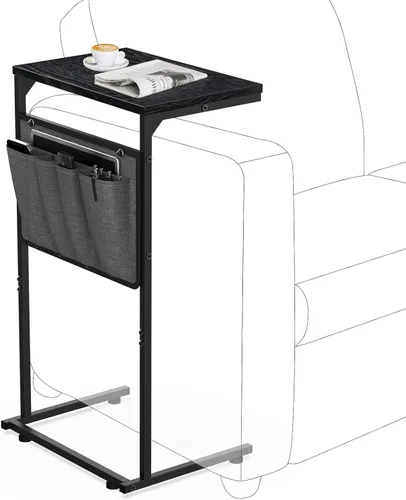 【Estructura conveniente】El diseño en forma de C te permite deslizar estas pequeñas mesas de sofá debajo de una silla, sofá y reclinable, ofreciéndote acceso conveniente a tu computadora portátil para la oficina en casa; Ideal para agregar una lámpara de mesa extra, comer una comida mientras ves la televisión Usos versátiles: la mesa auxiliar en forma de C de 27 pulgadas se puede utilizar como una mesa auxiliar, mesa de sofá, mesa de bandeja de TV, mesa de computadora portátil o mesita de noche para satisfacer tus necesidades; el estante superior proporciona espacio para colocar laptop, libros, revistas, café, una comida u otros artículos Carga resistente y fiable: con 4 pies ajustables en altura, la bandeja delgada para portavasos de sofá se puede utilizar en suelos o alfombras irregulares; las juntas de metal triangulares y el diseño del marco inferior extendido aumentan la estabilidad; capacidad de carga máxima de hasta 22 libras 【Bolsillo de Almacenamiento Adicional】Proporciona suficiente espacio de almacenamiento; Una bolsa grande de 14.3"*9.5" para tableta, periódicos y revistas, cuatro pequeñas bolsas de tela para almacenamiento temporal de control remoto, teléfono móvil y cargador sin ocupar demasiado espacio en la habitación Se adapta a espacios pequeños: tamaño de 16 pulgadas de largo x 11.6 pulgadas de ancho x 28 pulgadas de alto, se adapta fácilmente a los espacios entre tus sofás o los lugares estrechos; para hogares sin más espacio para mesitas de noche y mesa auxiliar de sofá, esta mesa auxiliar reclinable con bolsillo de almacenamiento es sin duda la excelente opción 【Fácil de montar y mover】Construcción simple del producto, piezas numeradas e instrucciones fáciles de seguir te permiten montar sin esfuerzo esta mesa lateral de sofá en 15 minutos; El diseño ligero permite que la mesa de bandeja lateral para sofá se mueva fácilmente