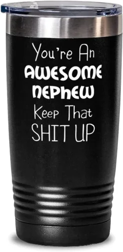 Vaso de acero inoxidable perfectamente aislado para sobrino. Nuestro nuevo vaso de acero inoxidable mantendrá tus bebidas calientes o frías. Se adapta perfectamente al portavasos de tu automóvil, por lo que es la taza perfecta para llevar contigo sobre la marcha o cuando estás haciendo mandados con los niños.