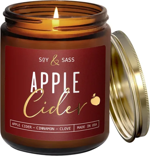 Velas de otoño indulgentes para una temporada acogedora: sumérgete en el cálido aroma del otoño con nuestra deliciosa vela de sidra de manzana. Las notas de aroma incluyen sidra de manzana, canela dulce y clavo terroso, impregnado con aceites esenciales para ayudarte a relajarte. Crea el ambiente acogedor que has estado esperando: nuestras velas de soja llenarán tu habitación con aromas indulgentes en 1 hora. Un moderno diseño de vela con nuestra firma elegante lámina dorada para elevar la decoración de tu hogar de otoño. Vela aromática de otoño con cera de soja 100% para una combustión limpia y ecológica: cada vela se vierte a mano en los Estados Unidos con cera de soja 100%, mechas de algodón sin plomo y aceites aromáticos de primera calidad, vertidos en un frasco reutilizable, por lo que son buenas para tu nariz y cuerpo. ¡Soy & Sass prohíbe el uso de parafina y otros productos químicos nocivos! Considera obtener 2 - "Visit the Soy and Sass Store" arriba. Tenemos una selección completa de aromas de otoño disponibles para verte a través de la temporada acogedora Vertido a mano con cuidado en los Estados Unidos y diseño de marca comercial: nos enorgullecemos de nuestras velas y se nota... Todas las velas de soja y Sass están diseñadas por nuestro equipo y marca registrada ante la USPTO. ¡Nos encantaría que apoyes a nuestra pequeña empresa donde todas nuestras velas se vierten en pequeños lotes!