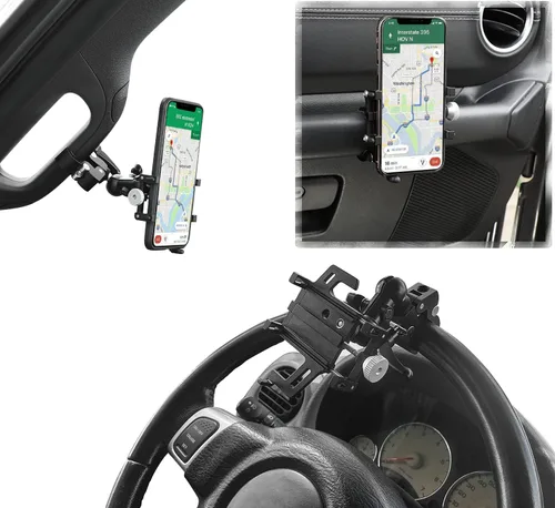 El soporte giratorio para teléfono móvil Voodonala de 360 grados se puede instalar en automóviles, camiones, SUV con pilares A, en el volante, en el reposabrazos del pasajero, en el espejo retrovisor de menos de 1.85 pulgadas, y todos los manillares (menos de 1.85 pulgadas) en motocicletas, bicicletas y mucho. Tamaño del producto: el portabrocas para teléfono móvil soporta hasta 5.85 pulgadas, el portabrocas fijo soporta hasta 1.85 pulgadas, y el ángulo de la biela es ajustable. La cabeza de bola de metal se utiliza para proporcionar un soporte más confiable. El tamaño original de la cabeza esférica es de 0.472 in, y el tornillo de 1/4 pulgadas es compatible con cámaras Go Pro. Resistente y estable: este soporte ajustable para teléfono tiene una palanca de bloqueo para maximizar la estabilidad y asegurar la instalación en su lugar. Material de aleación de alta calidad, incluso en carreteras difíciles, puede sostener el dispositivo de forma segura sin vibraciones ni sacudidas. Múltiples escenarios de uso: cuando desea cambiar el lugar de uso, puede proporcionar un desmontaje e instalación muy rápidos, y se puede utilizar cualquier volante de automóvil. Se puede quitar y fijar en la rama del árbol, lo que es muy adecuado para grabar cada minuto cuando juegas. Garantía de satisfacción: si no estás 100% satisfecho con el soporte para teléfono móvil Voodonala solo necesitas devolver el producto de acuerdo con las reglas de Amazon para recuperar tu pago. Si tiene alguna pregunta, puede ponerse en contacto con nosotros y proporcionar una garantía de calidad de un año.