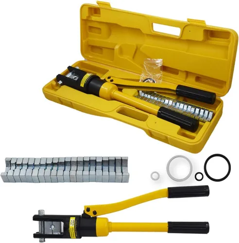 Material: Las pinzas hidráulicas están hechas de materiales de alta resistencia y alta dureza, templados y tratados para engarzar suavemente y no se deforman fácilmente Aplicación: la herramienta de crimpadora hidráulica es ideal para soldar cables, cables de alimentación y cables eléctricos, incluso se puede girar 180° para trabajar en espacios estrechos Lista del paquete: El paquete incluye 1pcs herramienta de prensado hidráulico de 16 toneladas con 11 troqueles Comodidad: El control del interruptor de la herramienta de cableado hidráulico se puede operar rápidamente, fácil de operar, se completa la sujeción, gire el botón hacia atrás para aflojar automáticamente Ventaja: Las herramientas de cableado hidráulico están equipadas con matrices de acero endurecido con una superficie chapada para un engarce más apretado