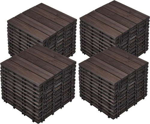 Yaheetech 44 baldosas de madera de 12 x 12 pulgadas entrelazadas para patio, jardín, balcón, revestimiento de suelo al aire libre para camino junto