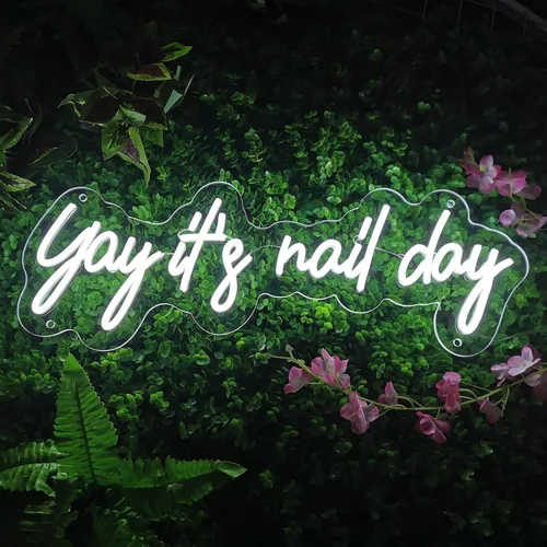 Letrero de neón con texto en inglés "Yay it is nail day", letrero de neón de uñas, decoración de salón de uñas, señalización de bienvenida abierta,