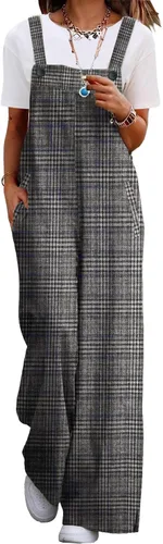 YESNO - Enterizo holgado de estilo informal, overol con pantalones largos de pierna ancha, de algodón y con bolsillos, para mujer