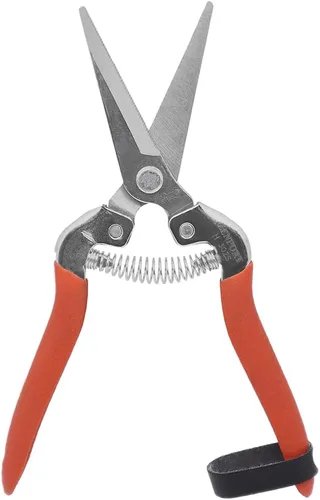 Las tijeras de cosecha Zenport H302S cuentan con cuchillas rectas dentadas de acero inoxidable que son ideales para cortar tallos gruesos, racimos florales, cosecha de campo, corte de caña, adelgazamiento y jardines domésticos. La hoja dentada larga y recta te permite cortar los tallos duros de las flores sin dañar las delicadas presentaciones florales. La acción de resorte abre automáticamente las cuchillas después de cada corte; las cuchillas se bloquean cuando no están en uso. Asas con agarres cómodos y antideslizantes que proporcionan un excelente control y apalancamiento.