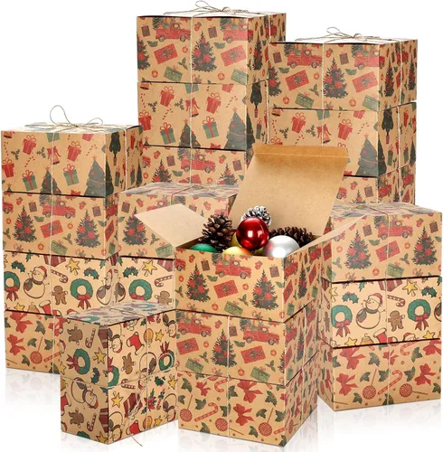 Características: La caja de regalo está diseñada para una multitud de regalos, ya sean aceites de baño, pequeños adornos, perfumes, cupcakes o galletas caseras para tus seres queridos. Y es práctico para preparar regalos de fiesta de Navidad. Es más que solo una caja de regalo vacía, es un lienzo en blanco para tu creatividad. Da rienda suelta a tu espíritu festivo creativo en nuestras cajas de regalo para recuerdos de fiesta y crea regalos que serán recordados mucho después de que terminen las vacaciones. Especificaciones: Material: papel kraft de 300 gramos Color: como se muestra Tamaño: Cajas: aproximadamente 20.3 x 20.3 x 11 cm / 8 x 8 x 4 pulgadas Cada yute: aproximadamente 5.91 pies/1.8 metros de largo El paquete incluye: 24 cajas de regalo de papel kraft con tapas 24 cuerdas de yute Notas: Medición manual, puede haber ligeras diferencias en el tamaño. El color puede variar ligeramente debido a las diferentes pantallas. Puede existir riesgo de enrollamiento, mantén nuestro producto alejado de los niños.