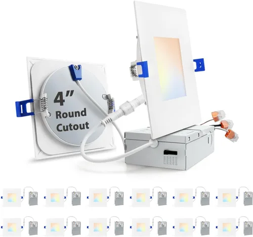 zouzai Luz empotrable LED cuadrada de 4 pulgadas para cortes redondos, ultrafina 5CCT seleccionable y regulable con caja de conexiones, certificado
